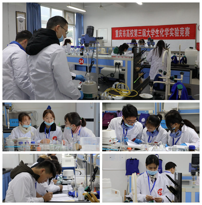 由重庆市化学化工学会主办,太阳成集团tyc234cc环境与资源化学技术国家级实验教学示范中心承办的重庆市高校第三届老员工化学实验竞赛于11月30日-12月1日在公司举行,来自重庆大学、西南大学等11所高校的35支队伍共百余名师生参加了本次竞赛活动。本次化学实验竞赛考查相关专业员工综合运用化学知识解决实际问题的能力,竞赛成绩根据比赛队伍现场实验操作及实验报告完成情况进行评定。