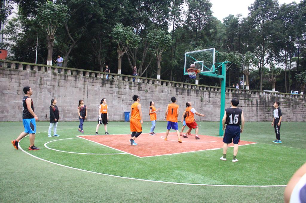 球场如战场,一上场球员们如上了发条的战士,你追我赶,你攻我守,似乎不知疲倦。刚一开始,机械队凭借着娴熟的配合控球夺得头分,环境队也不甘示弱紧随其后,半场过后球员们已汗流浃背,然而他们激情依旧。伴随着队员们漂亮的配合传球投球,场外引来了一阵阵欢呼。下半场比赛,环境队厚积薄发,不断投球得分,最后以45:34的比分战胜机械队,获得冠军。