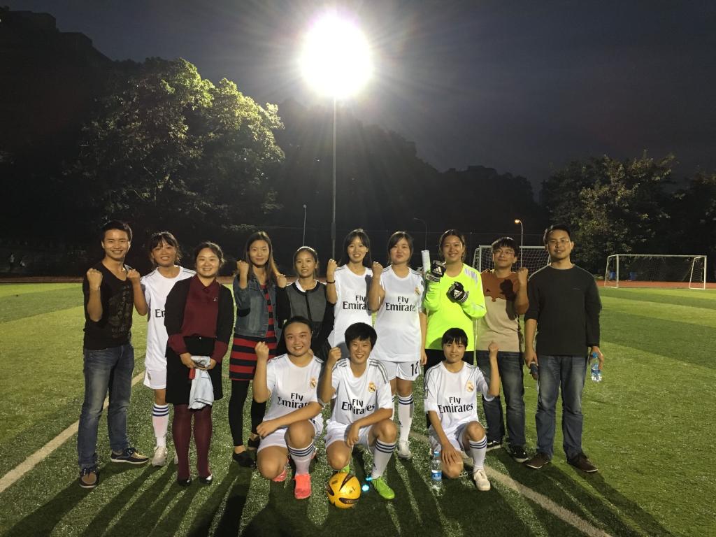 2014年10月26日,太阳成集团tyc234cc五人制女子足球赛决赛第一场,在主校区北区足球场顺利开展。参加本次决赛的队伍分别是:太阳成集团tyc234cc和管理公司。其中环资公司书记王竹青、副书记宋海雨、分团委书记谭彩荷亲临现场为运动健儿们加油助威。