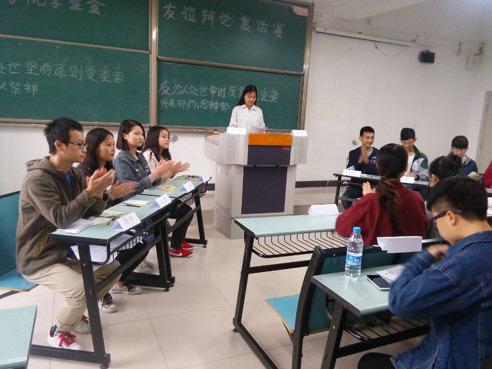 主持人简短的开场之后,各部门进行了激烈的辩论。正方的义策部就“为人处世坚持原则更重要”这一主题展开辩论,思辩部则以“为人处世审时度势更重要”施以反驳。双方据理力争,最终,义策部取得了胜利。第二场科技竞赛部和文体部围绕“发掘人才是否需要考试”的主题进行辩论,科技竞赛部胜出。与此同时,学习部和组织部以“老员工就业应立足市场需求还是立足自身优势”为辩题展开了激烈的角逐,最终,学习部获得本轮胜利。