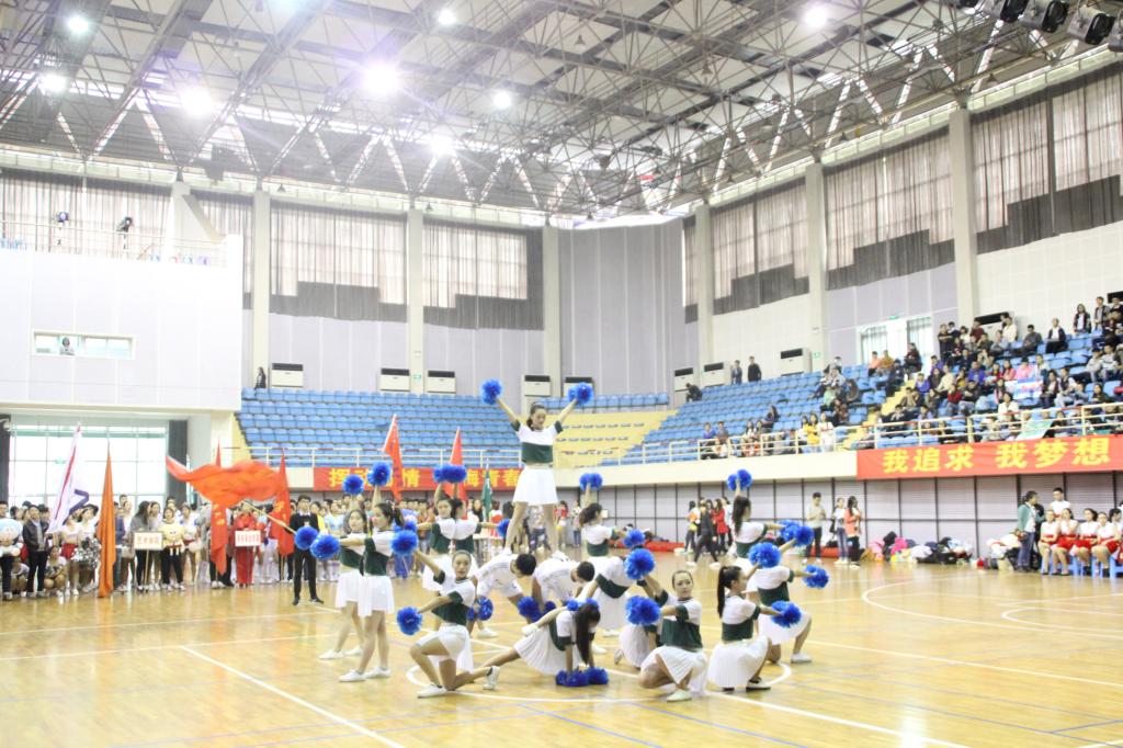在开场的各代表队风采展示中,环资学院啦啦操代表队以自编动作在众公司中独具一格,赢得在场观众和评委的掌声,同时也展示本院学子不一样的风采和积极向上的精神面貌。全体代表队啦啦操表演时间,全体代表队一起齐跳《小苹果》,把现场气氛带入高潮。之后各代表队开始规定啦啦操比赛,进行最后的正式比赛,环资学院啦啦操代表队从开场到最后现场掌声不断,从动作难度、动作整齐度、动作力度以及开场和结尾造型各方面得到评委和在场观众的一致肯定,并以总分448分的优异成绩排名第三(体育公司除外),斩获一等奖的佳绩。
