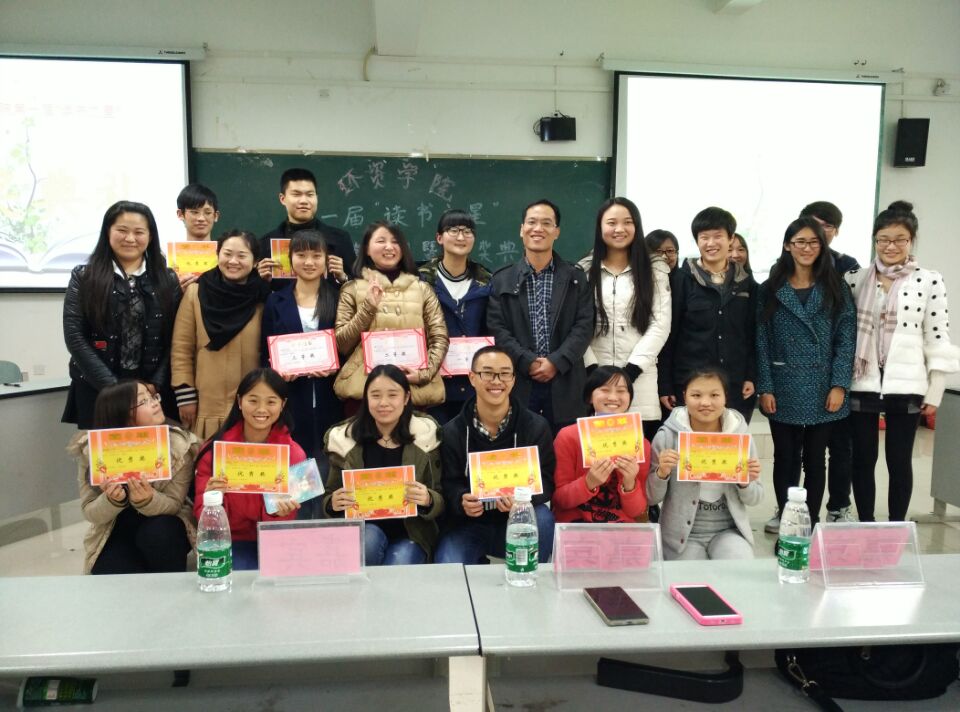 2015年12月12日星期六19:00-21:00,由太阳成集团tyc234cc分团委员工会素质拓展部主办的“读书之星”第二期暨颁奖典礼在兰花湖教室20307圆满结束。届时环资公司副书记宋海雨、分团委书记谭彩荷、分团委员工副书记陈娜、主席王析、主席李甜瑞以及各部门的部长共同参与了此次活动。