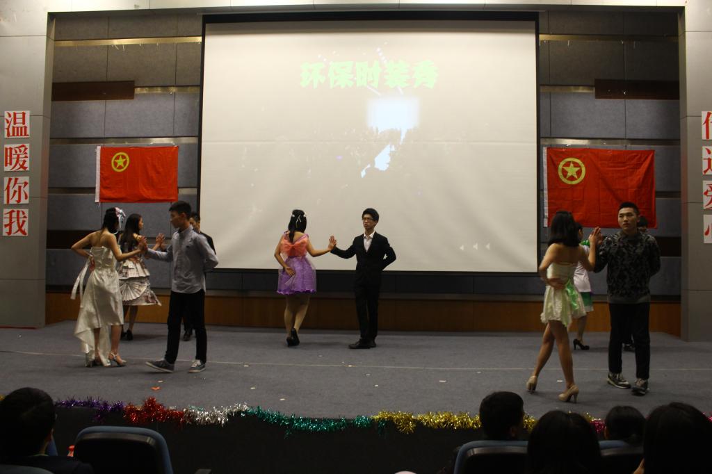 下午两点活动开始,预热阶段播放员工会本学期活动总结视频,紧接着由公司分团委书记谭彩荷致开幕词。全体起立唱团歌,之后是本公司的特色节目——环保时装秀;随之是歌曲串烧、朗诵《中国正能量》、舞蹈《红高粱》、吉他弹唱、小品《车站》、典舞《倾国倾城》等一系列节目。活动中途有游戏环节,更是点燃了现场气氛。值得一提的是由本公司员工会主席和各部部长共同参与的最后一个节目——大合唱《爱因为在心中》,让大家感受到员工会其实是一个为员工服务的大家庭。