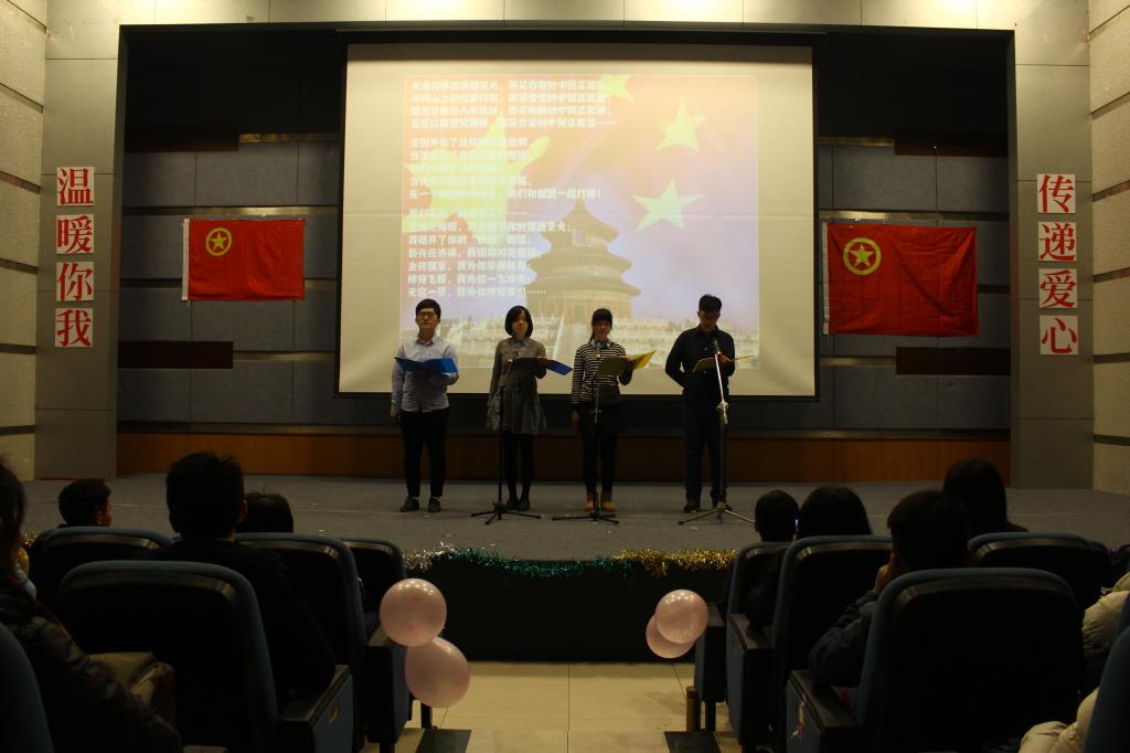 2015年12月20日下午14:00,环境与资源公司在主校区博智楼7100教室举办了以“传递爱心 温暖你我”为主题的团日活动。公司副书记宋海雨、分团委书记谭彩荷、辅导员程东海、环资公司员工会主席刘震涛、分团委员工副书记陈娜、义工协会会长王析、副主席沈曦和副主席李甜瑞以及其他公司的主席共同参加了此次活动。