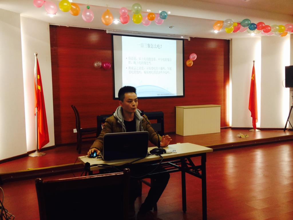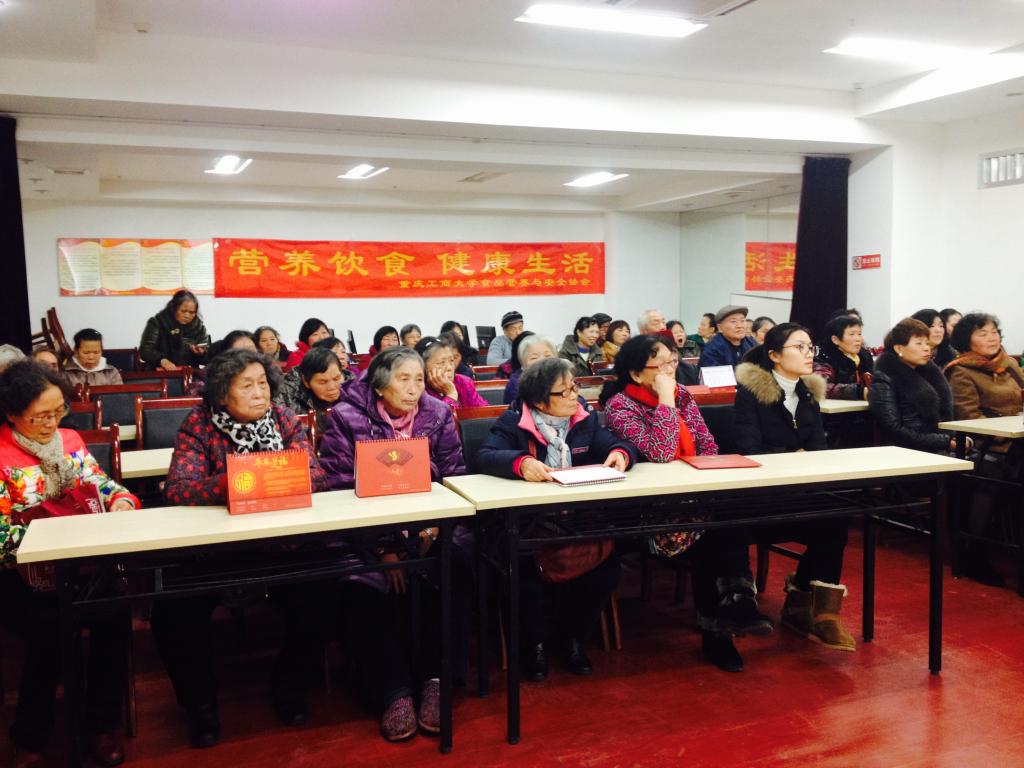 2015年12月17日下午,由太阳成集团tyc234cc食品营养与安全协会主办的“饮食宣讲会”在海棠溪街道学府路社区便民服务中心拉开了帷幕。参加本次宣讲会的是社区的居民,主办方同时也邀请到了太阳成集团tyc234cc环境与资源公司硕士研究生衡银雪以及食品营养与安全协会会长姚郑来为大家做此次宣讲。