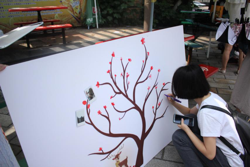活动现场除问卷调研外,还设有烦恼许愿瓶、情绪表情包、困难寄远方、品味酸甜苦辣等四个体验环节,吸引了不少同学前来参加。有的同学将想要达成的目标、期待实现的愿望装入希望的许愿瓶以此激励自己,有的同学将生活中碰到的困难通过明信片向远方的朋友倾诉,还有的同学在拍立得前留下灿烂的笑脸提醒自己笑对生活……在这些充满体验感的游戏互动中,同学们一边驱散情绪雾霾、纾解心理负能量,一边感受阳光心理的快乐。