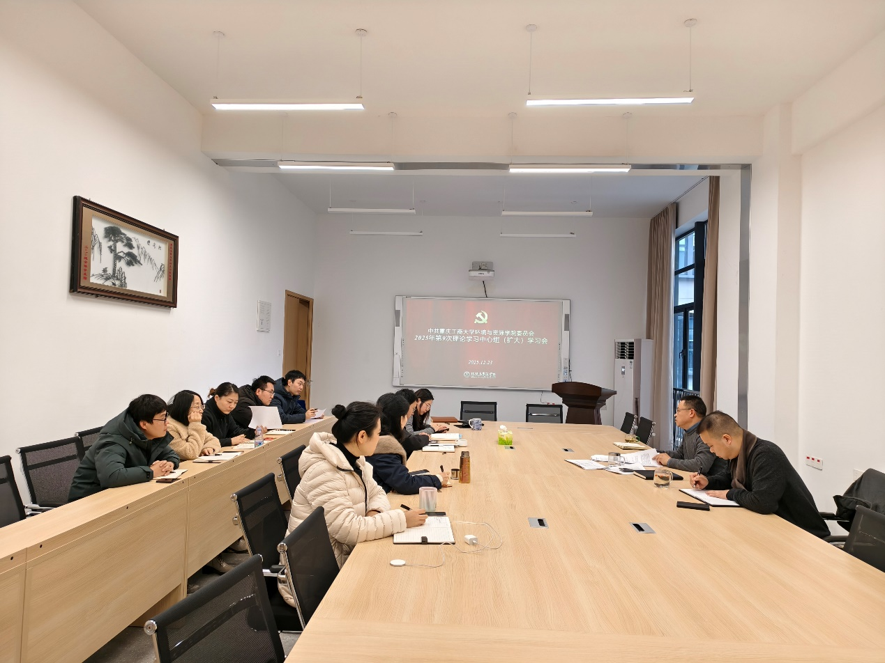 12月23日下午,公司在润智楼B223会议室召开党委理论学习中心组(扩大)2025年第9次集中学习会议,继续深入学习贯彻党的二十届四中全会精神和市委六届八次全会精神,深刻领悟“两个确立”的决定性意义。公司党委理论学习中心组成员、各党支部书记、工会主席、实验中心主任、综合办(副)主任、学工办(分团委书记)参与此次学习会议。会议由党委书记陈龙国主持。