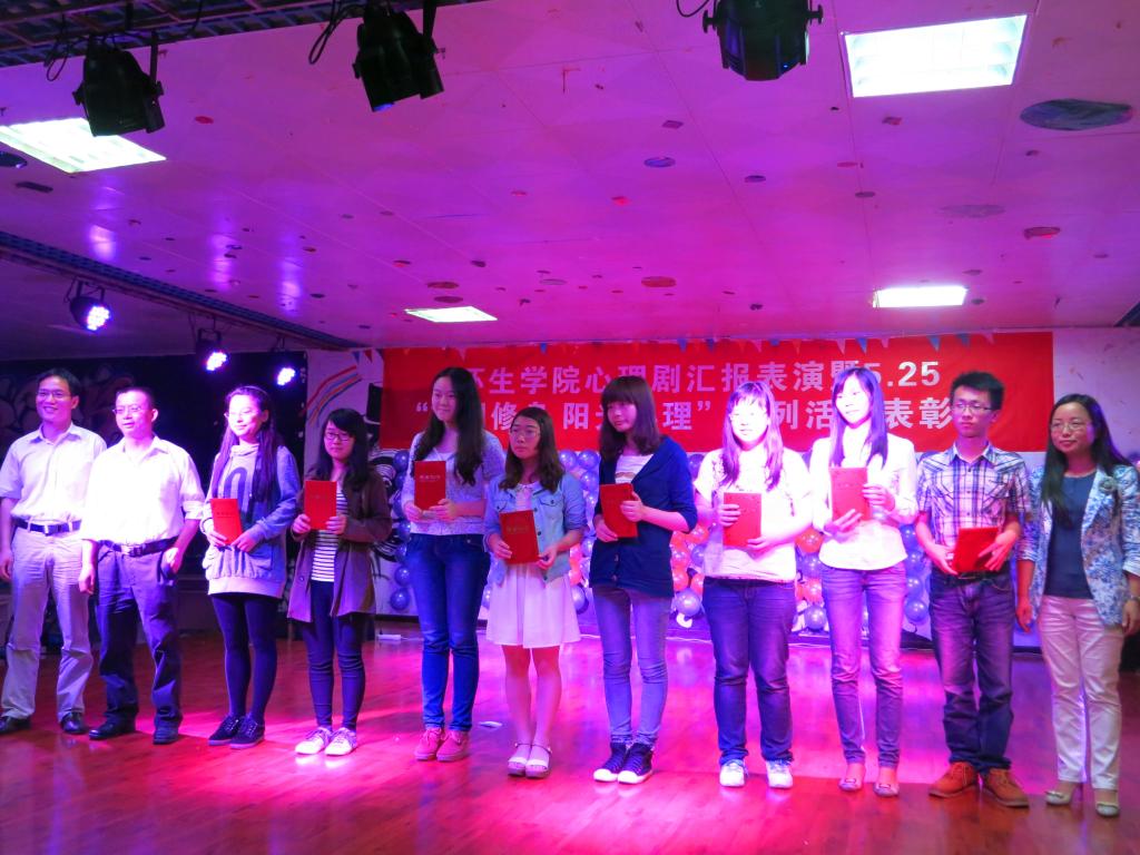 最后对在“文明修身 阳光心理”系列活动中获得心理健康征文、心理知识竞赛、心理话剧创作优秀剧本、心理剧最佳演出奖的同学进行颁奖。潘焱副处长总结到:节目精彩、真实,活动圆满落幕,感谢环生公司。希望心理健康在全校每一个角落里被关注,并传播“5•25”活动理念,拥有健康心灵,以更好的心态面对生活!