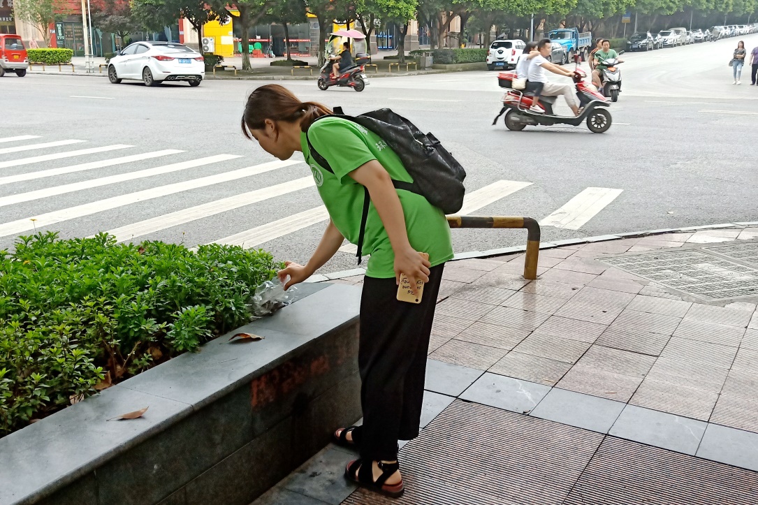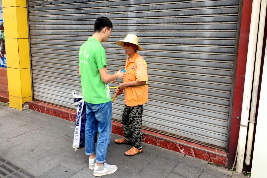 下午,志愿者们分为四个小组前往不同街道捡拾垃圾并为环卫工人送水,环卫工人表示宁可多辛苦也愿意支持开展垃圾分类的政策。