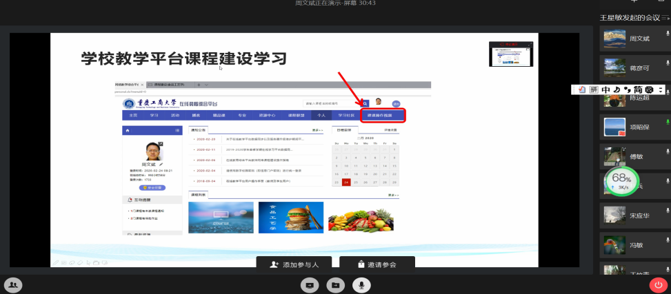为强力推进疫情防控期间的在线教学工作,太阳成集团tyc234cc高度重视在线课程开课效果及教学运行情况,多次召开在线视频会议,集思广益,解决师生在线教学的问题及难题。在本科教学在线运行一周之际,公司于2020年3月6日下午,利用企业微信平台,组织全院教师召开了在线教学交流研讨会;陈运超副董事长全程与教师们共话共议在线教学工作。