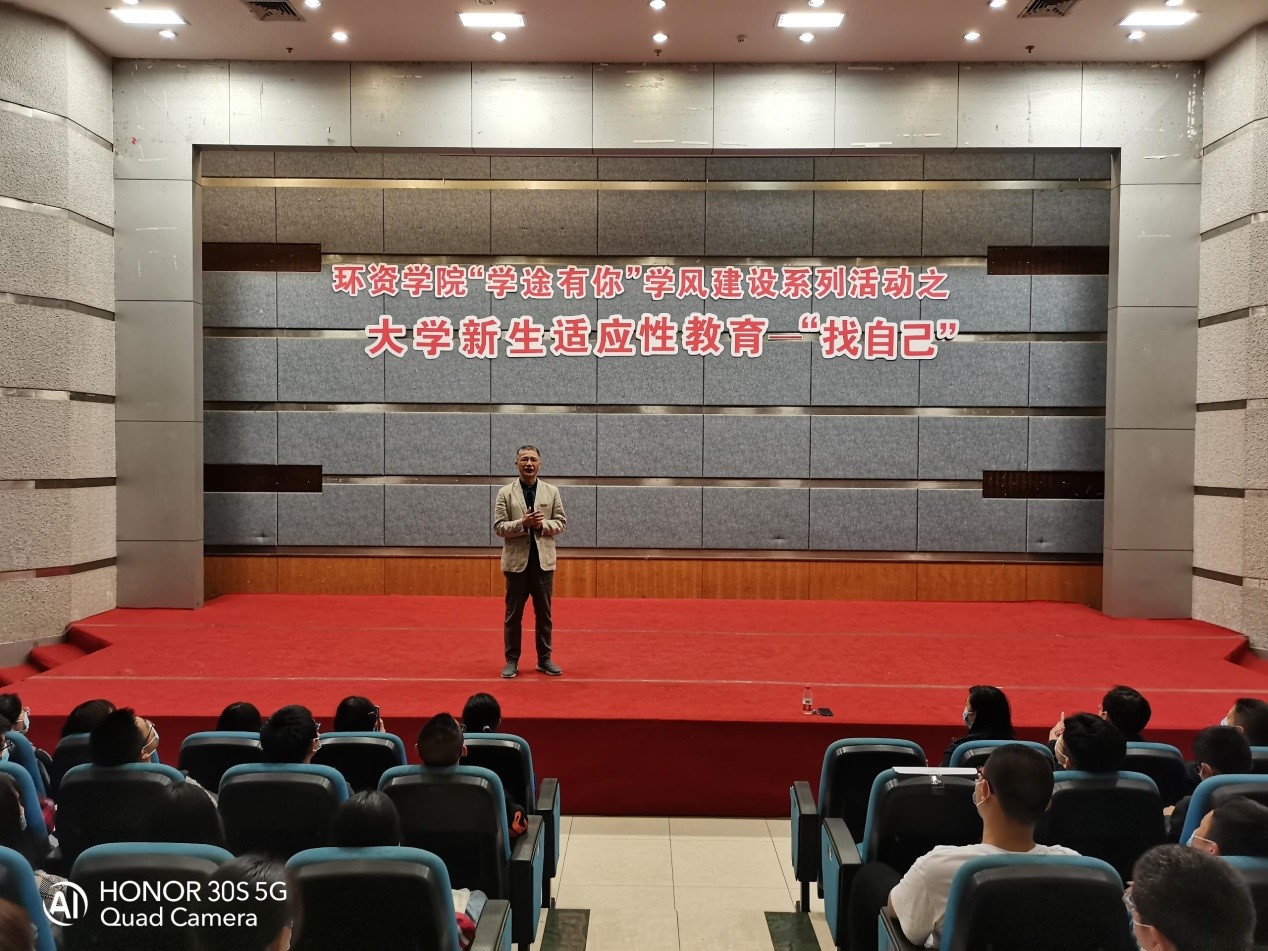 主讲嘉宾陈运超副董事长从为什么要 “找自己”和如何“找自己”以及“找人、找目标、找方向”的具体方法等方面为同学们进行了耐心细致的讲解并答疑解惑。首先,他从大学与中学的区别着手,带领同学们感知、感受和体会学习环境、生活环境、大学老师、学习方式和方法等等的变化,这些都是引起大学学习和生活不适应但每个同学必须面对的重要因素。其次,从学习的目的改变、身份变化、教学方式以及责任改变四个方面入手为同学们提供如何适应大学学习和生活的具体方法和方案。他讲到要正确处理师生关系,在学习上,要像小鸟学习飞翔一样不断地练习,要有效利用空闲时间学习,利用社团学习,全方面的成长,做好心理适配,从而找到自信。最后,从“读“大学的目标和意义是成为思维上理性,行为上理智的公民着手,做好大学规划、职业规划、人生规划,放下功利,不断思考、认真钻研,与自己比较每天都有进步。