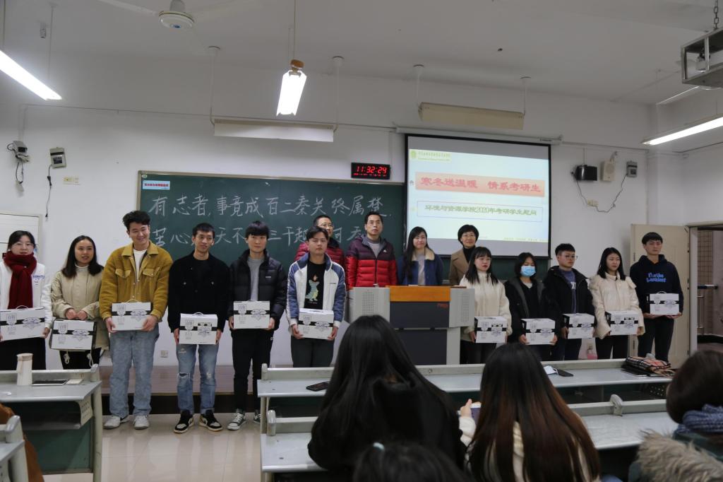 为给公司参加2020年研究生考试的同学加油打气,送去温暖。环资公司于11月27日上午11点在九教412教室为17级全体考研员工举行了“寒冬送温暖,情系考研生”活动,公司党委书记曾林,经理王星敏,17级带班辅导员老师以及全体参考员工参加了本次活动。