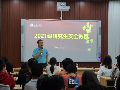 李宁副经理详细的讲解了研究生的培养管理、学位授予、创新实践活动、专业实习与实训等相关规定,同时对21级新生进行安全教育,通过实验室安全事故、电信诈骗、心理健康、不良生活习惯等案例,提醒大家注意人身安全、财产安全和心理安全。