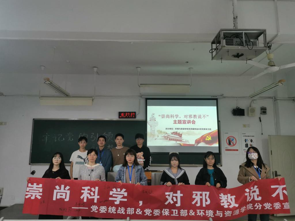 为弘扬科学精神,宣扬科学文化知识,培养同学们正确的人生观及保护同学们的身心不受邪教组织侵害。公司党员服务站组织的“崇尚科学,对邪教说不”线下宣讲会于2021年10月22日15时五十分在慧智楼90321正式开展,并有幸邀请党委保卫处秦爽老师、刘兵老师和公司党员服务站指导老师聂益芳老师作为本次活动的嘉宾莅临活动现场,为活动助力。