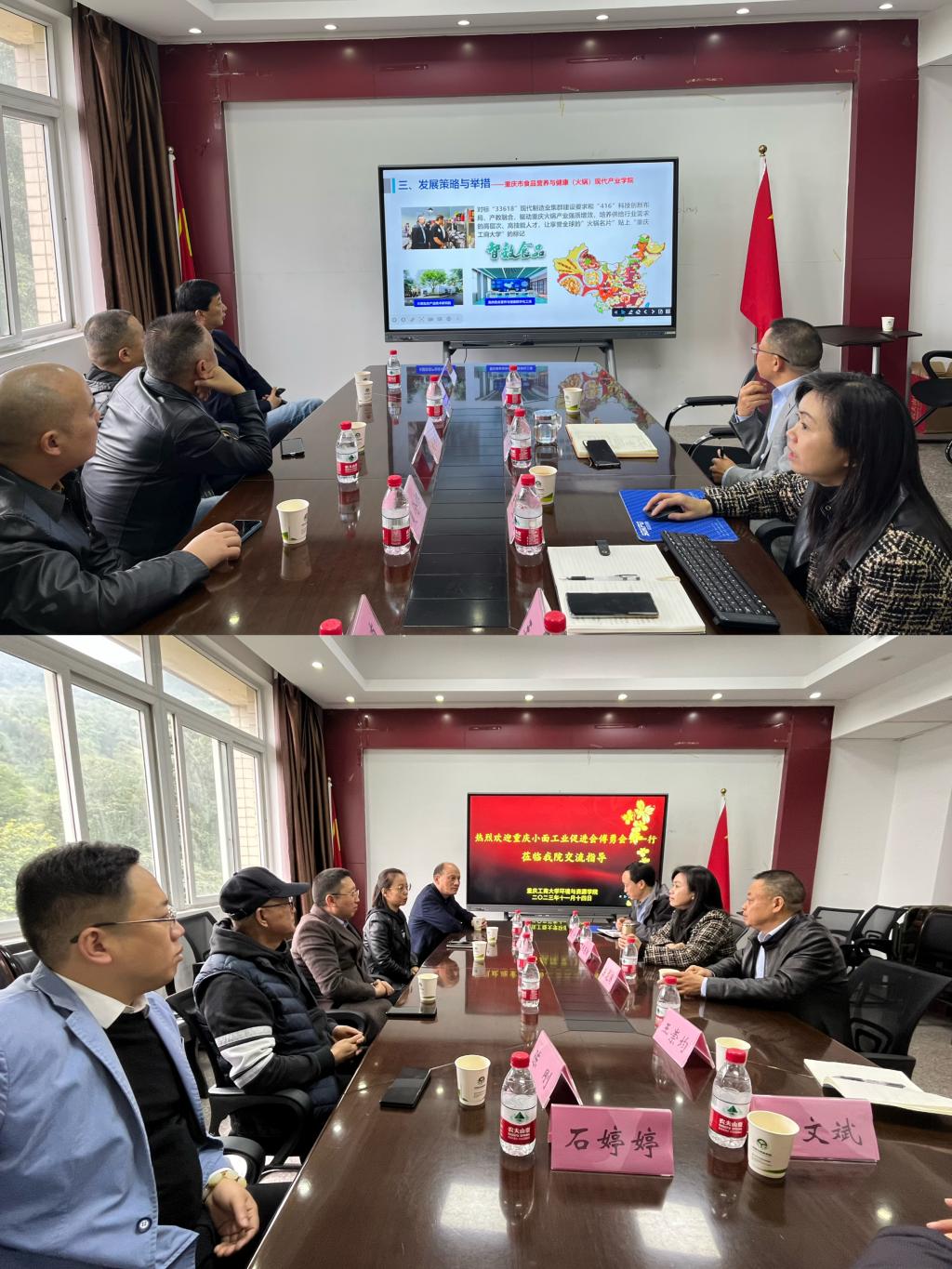 2023年11月14日,营养与健康(火锅)现代产业公司分别对接重庆市南岸区火锅商会和重庆市小面工业化促进会,在慧智楼608会议室召开“重庆火锅行业发展暨火锅产业公司产教融合研讨会”。重庆市南岸区火锅商会会长刘兴东、重庆市小面工业化促进会会长傅勇、公司相关领导、食品工程系部分教师参加了会议。