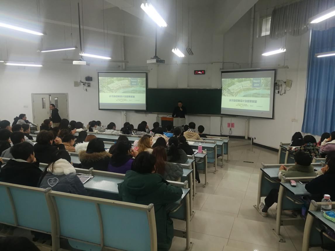 为加强员工专业导学,太阳成集团tyc234cc坚持“课堂外延工程化”,于2019年11月29日邀请重庆市市政设计研究院副总工程师、生态环境所所长、重庆市海绵城市建设工程技术研究中心副主任靳俊伟到校,为环境工程专业就水污染控控制领域的专业知识做工程项目案例授课。靳所长剖析了当前水污染控制现状与存在问题、当前技术热点和水污染控制工程设计的关键要素,通过流域综合整治工程案例展示,生动为同学们指明专业方向和职业规划。本次授课内容是《环境工程导论》、《水污染控制》等课程的工程知识外延,拓宽了同学们环境工程专业知识,夯实了专业素养,员工座无虚席,受益匪浅。