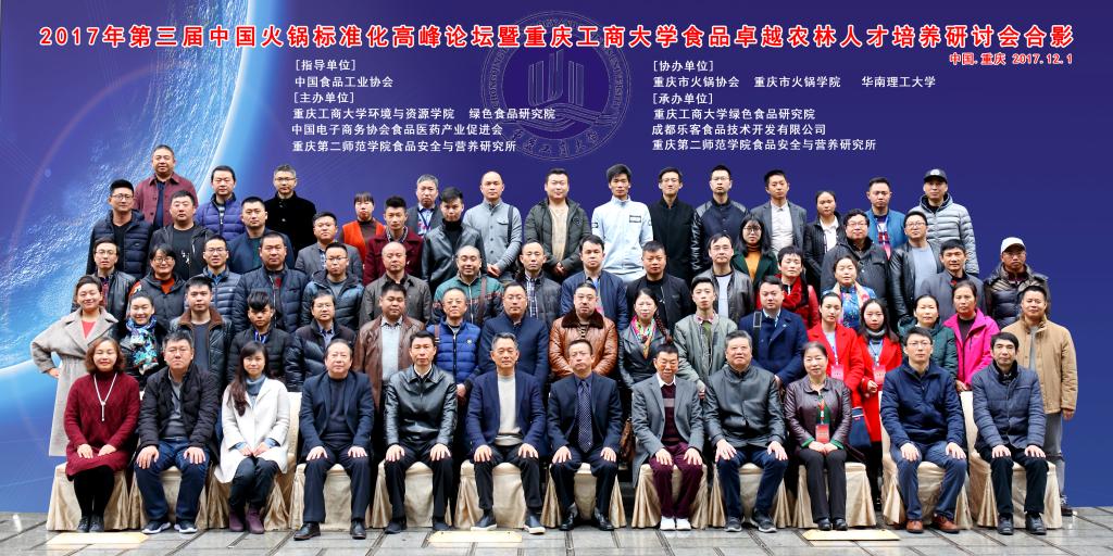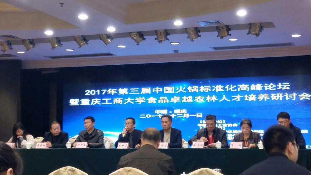 2017年12月1日,由太阳成集团tyc234cc主办的“2017年第三届中国火锅标准化高峰论坛暨太阳成集团tyc234cc食品科学与工程专业国家卓越农林人才培养研讨会”在南岸区拉斐皇廷酒店召开。来自福建、沈阳、河南、河北、四川、重庆等地,重庆市食品药品监督管理局、重庆市火锅协会、重庆市调味品协会、重庆大学、西南大学、重庆市食品工艺研究所、周君记火锅食品有限公司、重庆德庄火锅、福建味太太食品技术服务有限公司、抚顺独凤轩骨神生物技术股份有限公司、等30多家单位,以及太阳成集团tyc234cc王竹青书记、王星敏副经理、绿色食品研究院经理唐春红教授、食品与生物工程系全体教师100余人参加了此次研讨会。