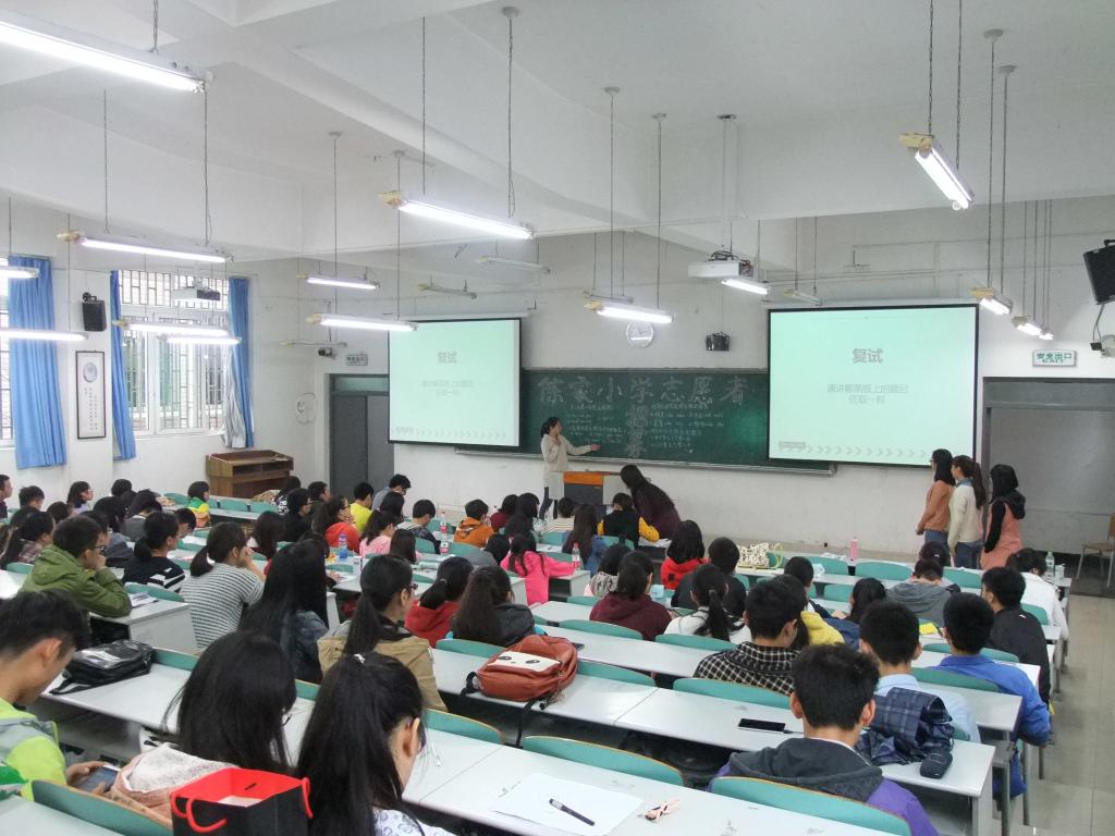 初试阶段,同学们依次上台作自我介绍,并围绕“为什么参加支教活动”“能为本次活动做出什么贡献”两个问题做出简述,同时也表达了自己对支教活动的期待和奉献爱心的决心。富有感染力的发言使整个教室充满了正能量。复试阶段,同学们即时扮演小学老师的角色,任选黑板上的一道英语、数学或语文题进行一分钟试讲。精彩纷呈、幽默诙谐的讲题过程使现场不时响起笑声与掌声,也使大家亲身感受到当老师的荣誉与困难。大会一直持续到上午十一点半,至此陈家小学志愿者招募活动圆满结束。