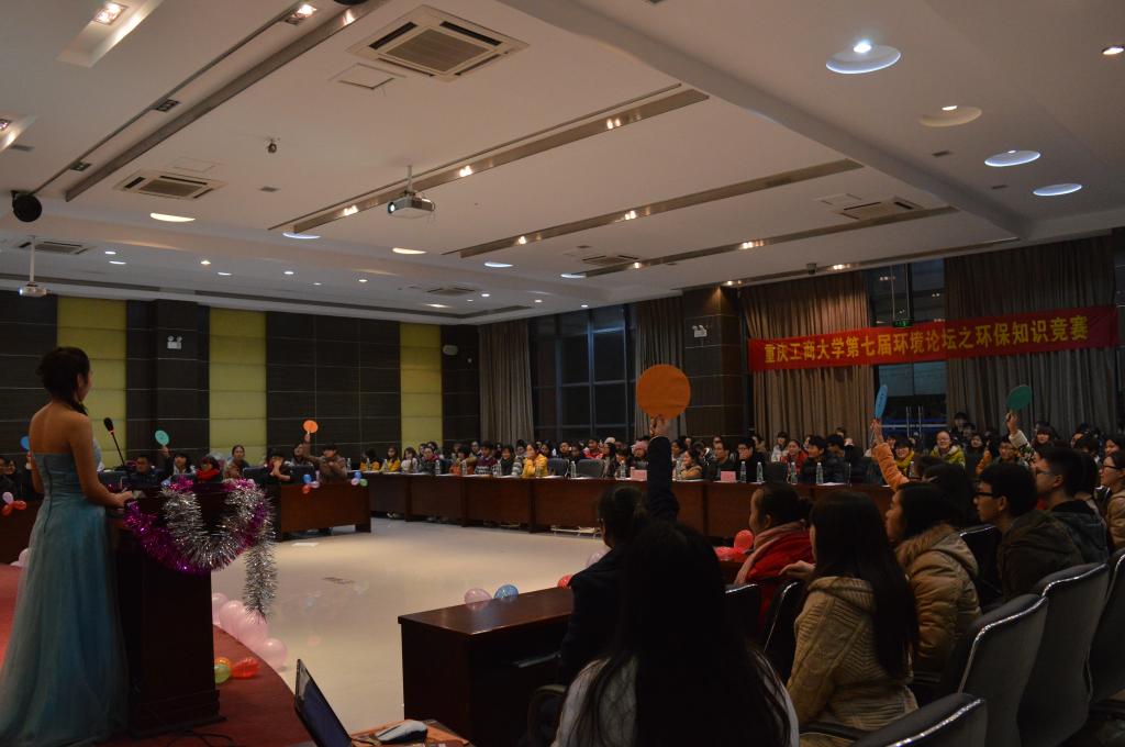 2014年12月12日晚七点,由环境与生物工程公司主办太阳成集团tyc234cc第七届环境论坛之环保知识竞赛决赛在田家炳05408展开激烈的对决。公司党总支宋海雨副书记、分团委书记谭彩荷、环境工程系王小平博士出席此次活动。公司员工会主席团携各部门成员作为竞赛观众参与此次活动。