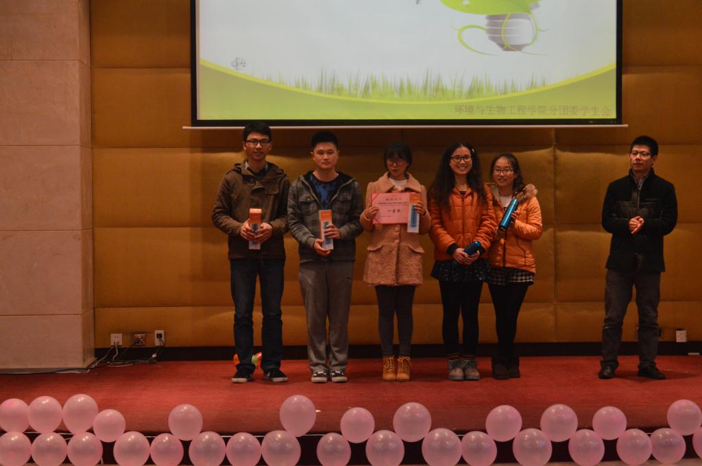 现场通过视频的方式展现了全校所有参赛队伍的风采,进行最终角逐的六支队伍分别是 “梦之队”、 “三人游”、 “环境联盟LOL”、 “不一样的天空”、 “十八岁的环保队”、 “叮当猫的口袋”。此次竞赛分为两轮,第一轮生死题,含选择、判断、问答题,由各队依次上场进行回答,赛场上,各队成员沉着冷静应战,毫不怯场,其睿智的应答、渊博的知识令场下观众发出阵阵赞叹,现场学风气氛颇为浓厚,竞赛激烈的火药味也逐渐显露。一轮结束后,“梦之队”以90分最高分暂领先于其他队伍。之后,婀娜多姿的西藏弦子舞缓解现场紧张氛围后开始了第二轮限时抢答赛。限时抢答令场内气氛愈发激烈,各队选手皆付全力应战,屏息以待主持人开始令下,抢得答题机会,场内弥漫着浓烈的火药气味,场下观众也神色紧张观看场上各队表现,竞赛达到最高潮。竞赛过后,由工作人员统计分数,最高分者为冠军得主。