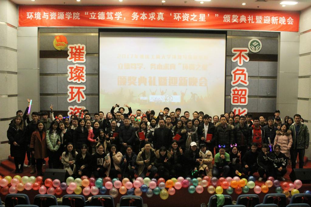 为进一步弘扬“立德笃学、务本求真”的院训精神,充分发挥先进典型的模范作用,促进全院员工全面发展,同时也为迎接新年的到来,更好地展现员工风采、增强公司员工组织、各班凝聚力。由公司分团委员工会主办的“立德笃学,务本求真、环资之星”颁奖典礼暨迎新晚会于2017年12月24日周日晚上19:00在南岸校区博智楼7100报告厅举行。公司分党委王竹青书记、分党委吴佑波副书记、王星敏副经理、公司关工委副主任王宜林老师、热心资助公司员工的02级化工专业优秀员工陈诚、各系系主任、部分专任教师及学团办老师参加此次晚会。
