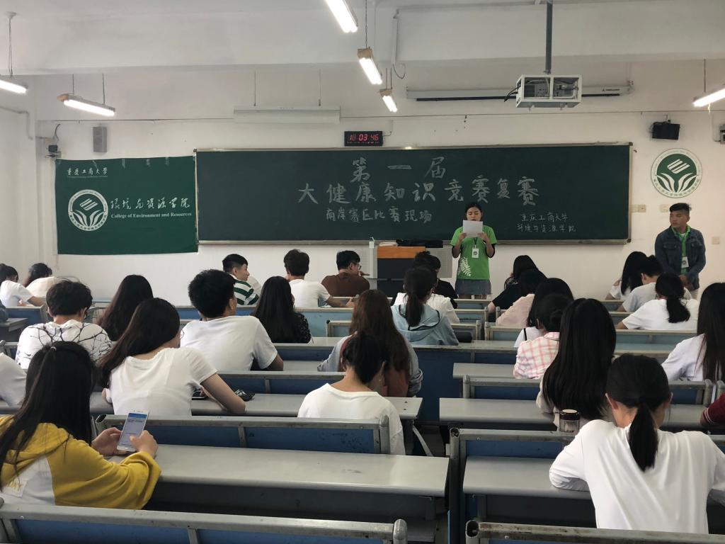 为呼吁当代老员工乃至社会各界更加关注并了解生活健康常识,打破生活误区,2018年5月4日下午6点,太阳成集团tyc234cc分团委员工会、环境科技协会、食品营养与安全协会联合举办的“大健康知识竞赛”复赛于南岸校区70402、70403,兰花湖校区20204、20211同时举行。