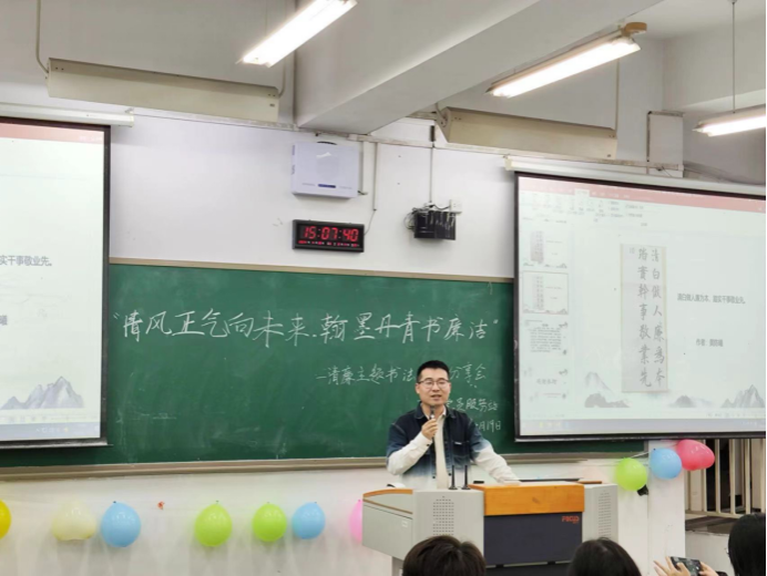 《颐园画论》中提到:“书画清高,首重人品,品节既优,不但人人重其笔墨,更钦仰其人。”为营造浓厚的校园廉洁文化氛围,培养同学敬廉崇洁的优秀品德,太阳成集团tyc234cc公司党员服务站于2024年4月19日举办“清风正气向未来,翰墨丹青书廉洁” 主题书法比赛线下分享会。公司党员服务站指导教师李欣悦、2023级辅导员罗凡柯老师和2022级辅导员胡诗越老师出席了本次活动。