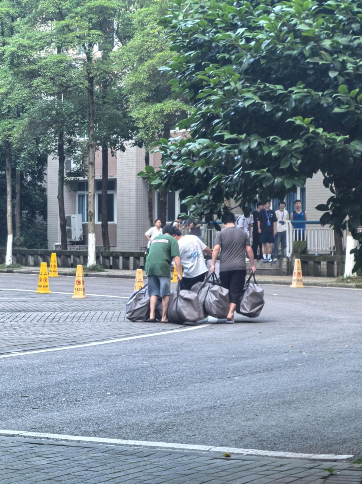 搬迁过程中,最令人动容的是师生志愿者展现出的无私奉献精神和强大的凝聚力。众多教师主动放弃休息时间,积极参与到行李打包、搬运、引导等工作中;员工志愿者们更是冲锋在前,不辞辛劳,顶着高温天气,一趟趟往返于新旧宿舍楼之间,肩扛手提,楼上楼下奔波,挥汗如雨。他们分工明确,协作高效,有的负责在宿舍楼内打包整理、标记信息,有的负责在楼下装车运输,有的负责在新址卸货、引导分发,整个搬迁现场秩序井然,有条不紊。志愿者们用热情的服务和辛勤的汗水,有力保障了搬迁工作的顺利进行。