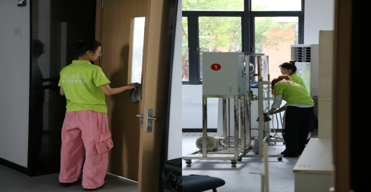 活动当天午后气温较高,但同学们仍积极响应、准时集结,在组长指挥下有序领取清洁工具并投入劳动。各组员工分工明确、态度认真,对教室、走廊及办公房间等区域进行了彻底清理。经过近两小时的共同努力,润智楼教学楼环境焕然一新,原有装修积尘得到彻底清除。