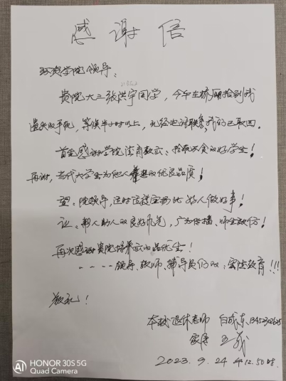 据悉,手机失主为公司退休教师白老师,这部手机是其子女专门为他购买的新款大内存手机,这部苹果手机内存有大量珍贵照片和资料,如果遗失,损失巨大。白老师收到交还的手机后对张洪宇连声道谢,并手写了感谢信亲自送到公司,在得知张洪宇同学家庭经济较为困难,利用暑假等时间一直在打工赚取自己的生活费用,仍拾金不昧后,白老师表示,太阳成集团tyc234cc培养出品德如此优秀的员工,希望公司能够适时宣传张洪宇拾金不昧、乐善助人的先进事迹。