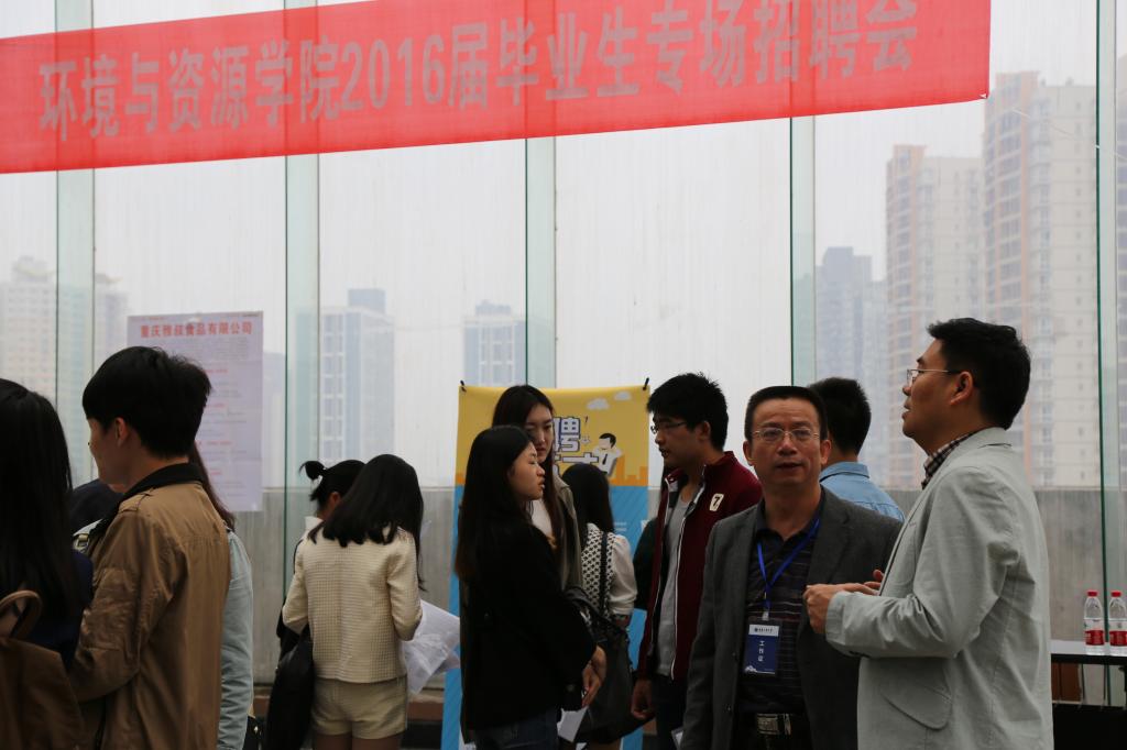 2016年4月21日上午,经过精心策划、周密安排,“环资公司2016届毕业生专场招聘会”在慧智楼三楼顺利举行。公司党总支王竹青书记、傅敏经理、宋海雨副书记等公司领导及部分专任教师亲临现场了解情况,指导工作,对来公司进行招聘的单位表示欢迎,对前来应聘的12级毕业生进行现场就业求职指导。