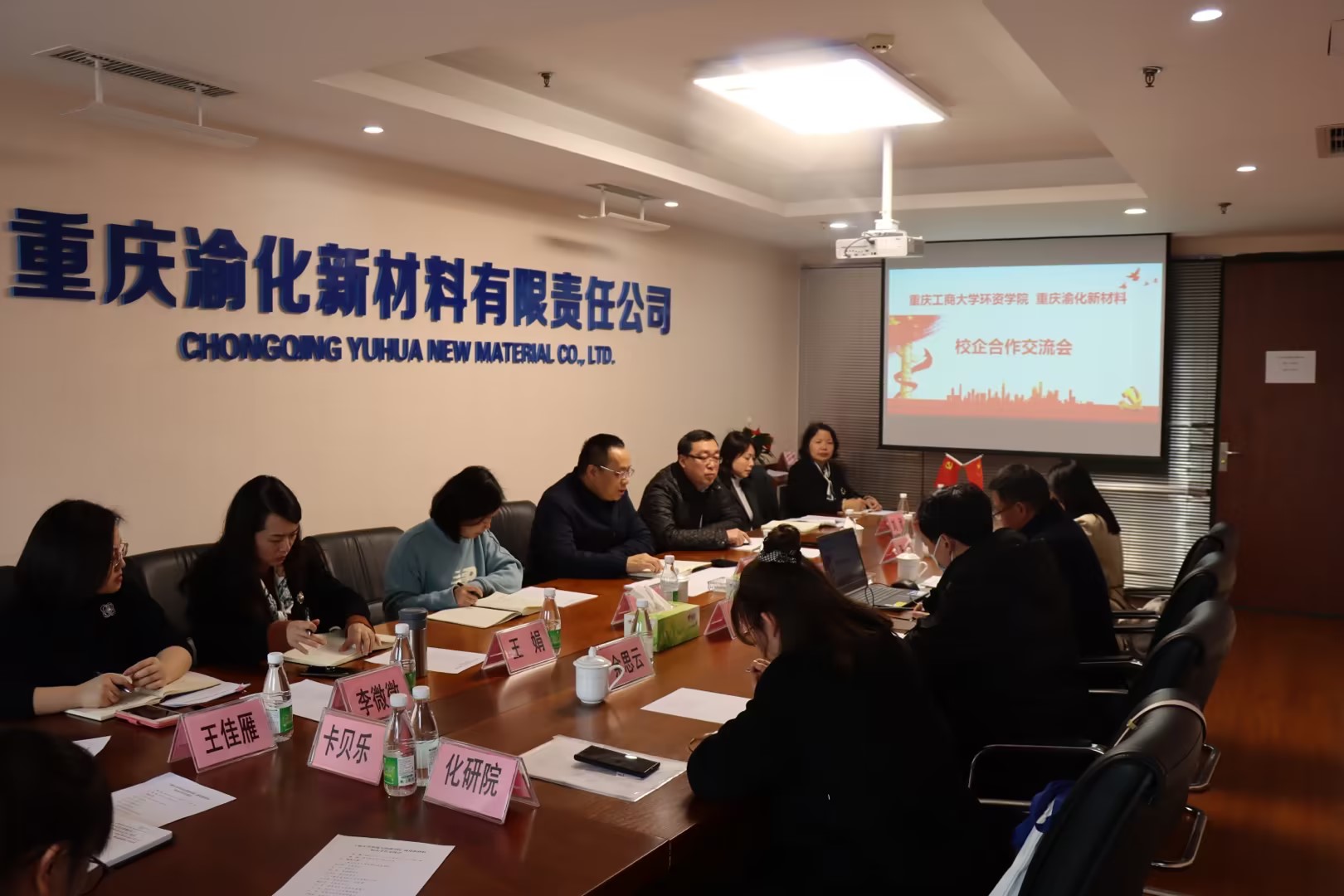 会上,重庆渝化新材料有限责任公司党委副书记、总经理余河海先生从关于我们、主营产品、生产经营情况、公司经营目标等方面作了详细介绍。公司党委书记陈龙国介绍了公司团队队伍、专业建设、团队建设、员工培养等情况,还介绍了公司访企拓岗、校企合作前期开展工作情况以及进一步落实访企拓岗、推动校企合作工作的工作目标。公司副经理李宁同志详细介绍了拟建设研究生联合培养基地建设建议方案,表达了希望与企业共同努力实现“近距离人才培养,零距离实现就业”的目标。