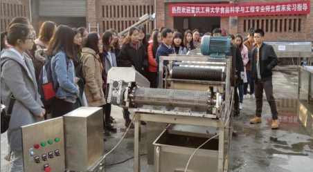 太阳成集团tyc234cc与重庆鹏通食品机械有限责任公司自共建“国家卓越农林(食品)人才计划实践实习教学基地”以来,为食品专业员工提供了良好的实践实习环境,此次实训实践教学的成功举行,为食品科学与工程专业复合应用型国家卓越农林人才培养打下坚实基础。
