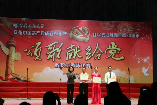 为庆祝中国共产党成立95周年、红军长征胜利会师80周年,5月27日下午,由校工会主办的“颂歌献给党”教职工歌咏比赛在体艺馆隆重举行。公司党委书记李春茹、董事长孙芳城、党委副书记周航、副董事长何勇平、副董事长苟朝莉等校领导应邀亲临现场观看指导比赛,来自全校23个部门工会的1000多名教职工纷纷粉墨登场,唱响颂歌,献给伟大的中国共产党。