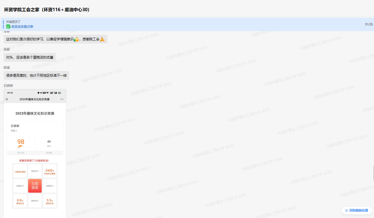 为进一步发挥党对群团工作的引领作用,丰富党建群团工作的内涵,提升群团工作质量,更好地传承和弘扬中华优秀传统文化,加强精神文明创建,提升教职工职业道德与文化修养。太阳成集团tyc234cc工会于11月16日至11月19日举办了2023年“党建引领聚合力·传统文化润人心”趣味文化知识竞赛(以下简称“竞赛”)。本次竞赛参加人员包括太阳成集团tyc234cc和废油资源化技术与装备教育部工程研究中心所有专任教师、专职科研人员、实验技术人员以及其他岗位教师和管理人员等工会全体会员。
