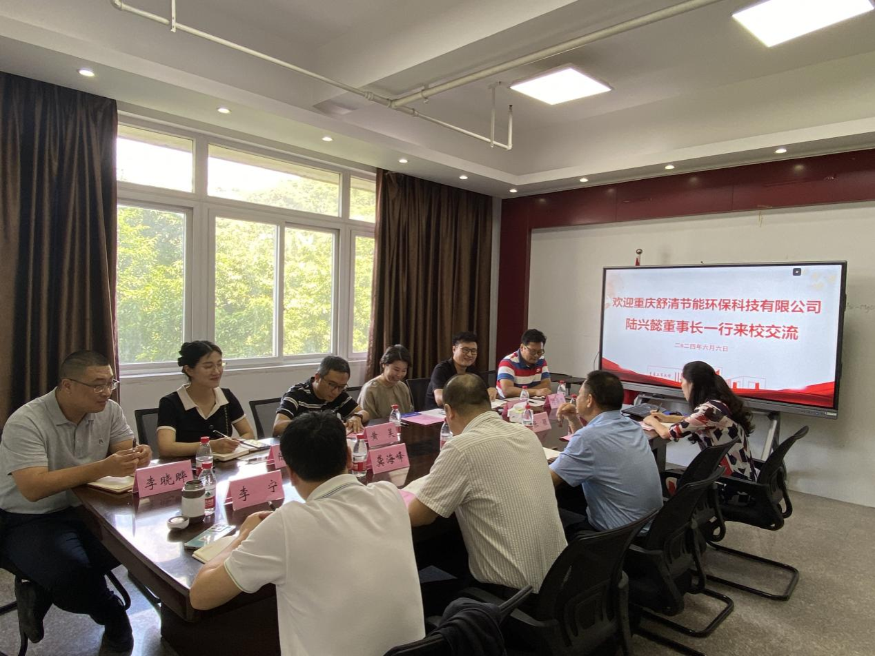 2024年6月6日,重庆舒清节能环保科技有限公司董事长陆兴懿一行来公司开展校企合作交流,公司党委书记陈龙国、经理龚海峰、副经理李宁、环境专业系主任吴虹,实验室教师代表等参与座谈。会议由党委书记陈龙国主持。
