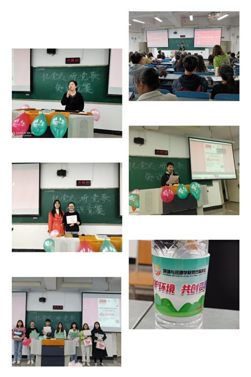 为了纪念建党100周年,追忆党的光辉事迹,使同学们知党爱党,环境与资源党员服务站于4月2日下午14点在九教慧智楼90326举办“忆党史、听党歌”知识竞赛活动,带领同学们一起回顾党的光辉岁月。环资公司谭彩荷副书记、学团办张颖主任、环资党服指导老师刘璐以及党员服务站站内的积极分子、预备党员、正式党员代表和公司同学代表参加了此次活动。