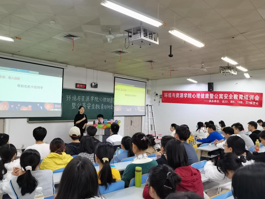 10月15日中午12:30,太阳成集团tyc234cc北23、南9、南13B和兰1楼管会组织筹办了心理健康暨公寓安全教育培训会,员工处胡佳怡老师和谭彩荷书记为公司全体室长同学进行心理健康与公寓安全教育培训。