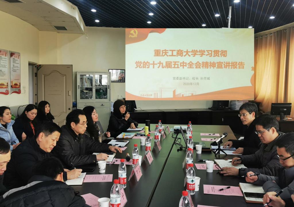 2020年12月21日,孙芳城董事长莅临公司宣讲党的十九届五中全会精神。他首先传达了教育部、重庆市、市教委和公司关于学习贯彻全会精神的要求,从全面把握新发展阶段、深刻认识新发展格局、坚持党的全面领导等五个方面对全会精神进行了深入解读。