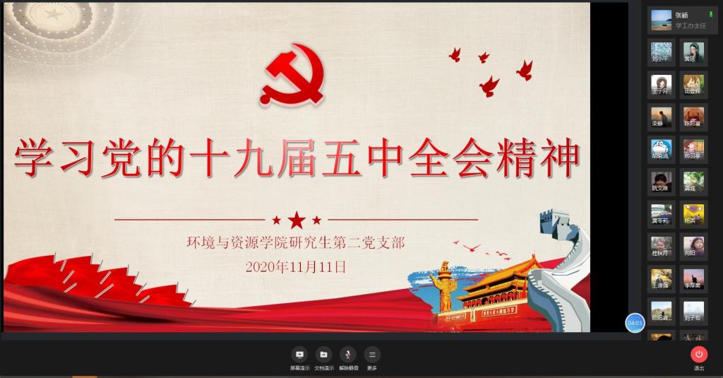 12月17日,公司党的十九届五中全会精神员工宣讲团成员,公司2019级食品科学班赵久毅同学在慧智楼609会议室举办报告会,向公司研究生一、二支部的全体党员同学宣讲党的十九届五中全会精神。