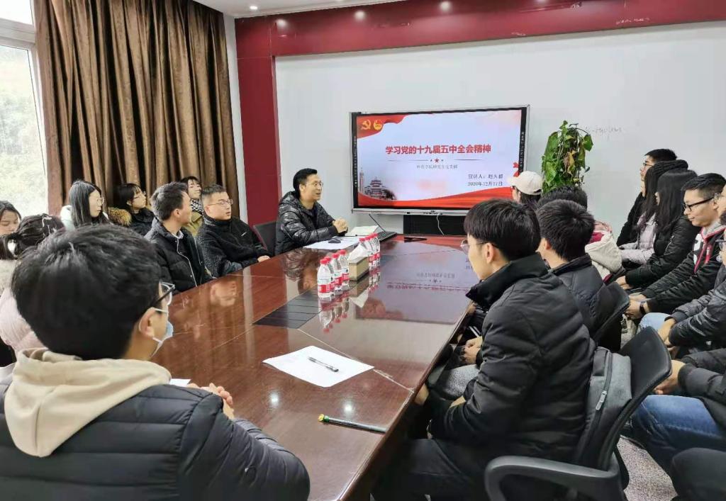 按照校团委的统一安排和相关工作要求,太阳成集团tyc234cc在全院员工范围内遴选了2019级食品科学班赵久毅同学作为公司党的十九届五中全会知识员工宣讲团成员。赵久毅同学作为一名共产党员,同时也是食品科学班班长和研究生一支部支部委员,在经过由校团委组织的系统学习、培训后在全院员工范围内开展全会精神宣讲。12月17日中午,公司在慧智楼609会议室举办学习贯彻党的十九届五中全会精神宣讲报告会。赵久毅同学向公司研究生一、二支部的全体党员同学作了宣讲报告。