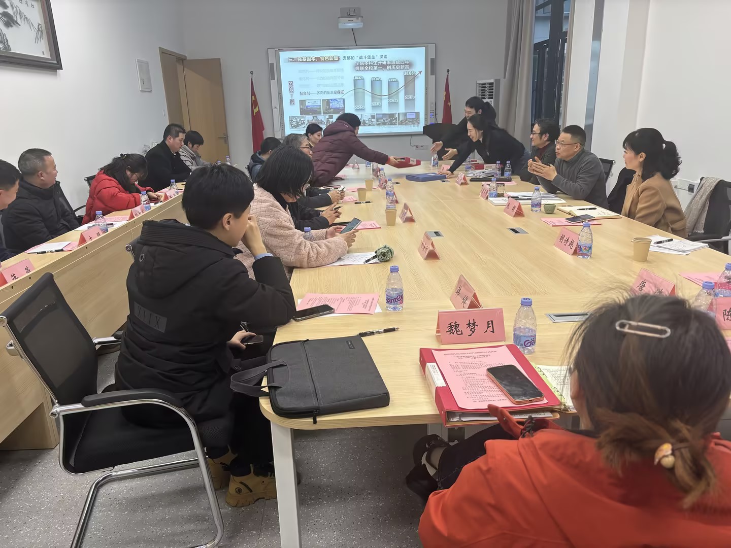 支部经验分享环节,公司全国首批党建工作样板支部、教工第三党支部书记吴虹介绍了全国样板支部及重庆市“双带头人”教师党支部书记工作室的培育创建过程,分享了支部在教学、科研、社会服务中发挥战斗堡垒作用的实践路径。第二批全国高校“百个研究生样板支部”、研究生第一党支部书记胡诗越汇报了支部在思想引领、科研创新、服务长江经济带绿色发展等方面的具体举措与成效。会上,与会同志们还围绕在党建“双创”工作中的整体谋划、资源保障与特色凝练经验,员工考研引导、党建绩效激励机制等具体问题进行了深入探讨。