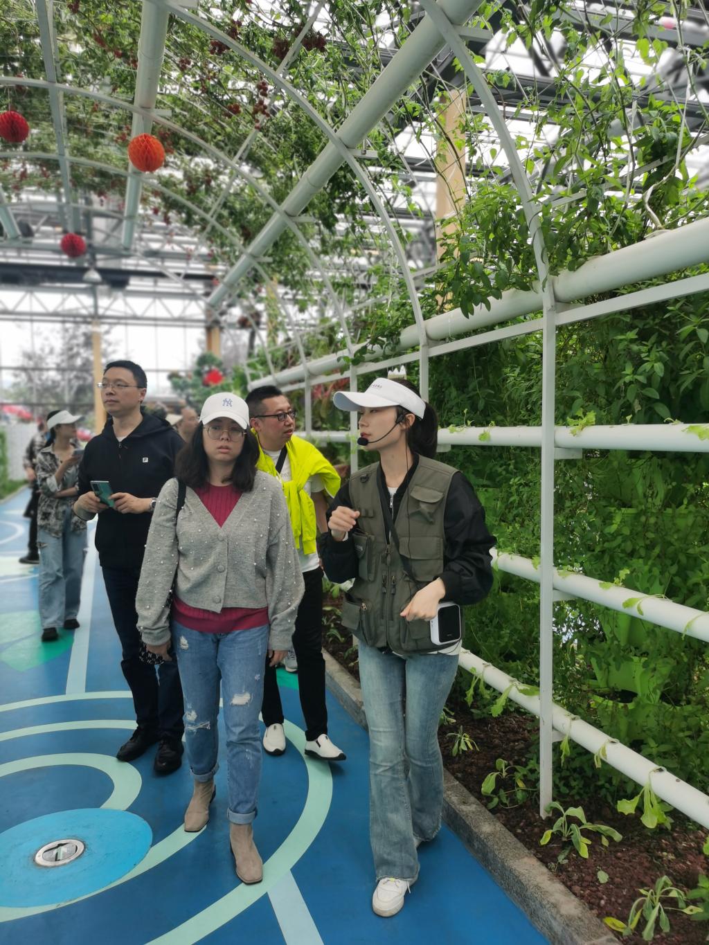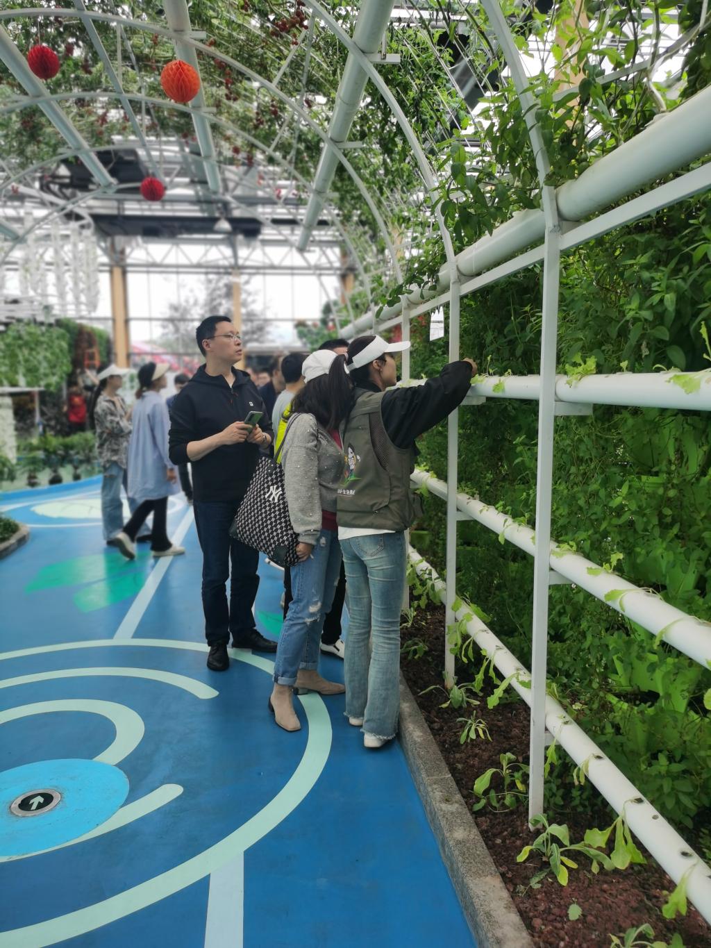 党员同志们在体验了大地食堂的农家菜之后,在讲解员的带领下,参观了农庄中的四个不同主题的农业科学文化场馆,了解了以智慧温室为代表的设施农业以及墙式栽培、空中栽培、管道式栽培、鱼菜共生等多种高科技栽培模式,领略了古法酿酒、手工米花糖制作工艺等非遗文化艺术魅力。同时,通过讲解员的介绍,大家还了解到,江小白农庄通过高粱-油菜轮作,以“公司+农户”的模式,带动周边种植户致富增收,另一方面还帮助当地农民在农庄内务工就业。近年来,农庄还利用文化、生态资源,打造春赏花、夏种粮、秋收割、冬酿酒的乡村生态旅游业态,每年吸引游客近10万人次。