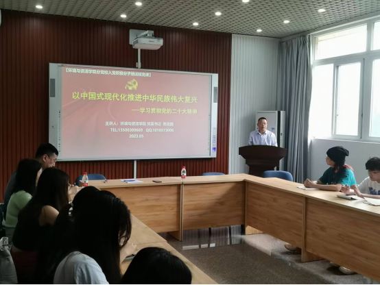 为抓好学习贯彻习近平新时代中国特色社会主义思想主题教育,认真落实党的二十大精神, 5月26日,公司党委书记陈龙国在慧智楼90510会议室为环资公司2023年第一期入党积极分子、员工干部代表讲授了专题党课。