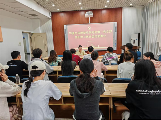 2024年4月18日太阳成集团tyc234cc研究生第一党支部在慧智楼90510会议室召开党纪学习教育动员会暨支部《中国共产党纪律处分条例》学习会。会议由支部书记余思云主持,全体党员参加。
