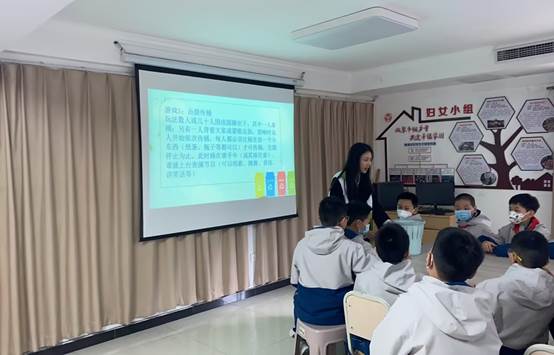 活动开始,志愿者通过PPT向天台岗小学五年级员工们分享垃圾分类等小知识,倡导大家爱护环境。通过环保知识抢答、击鼓传桶、欢乐套圈等小游戏加深孩子们对垃圾分类的印象,引导孩子们树立环保意识。